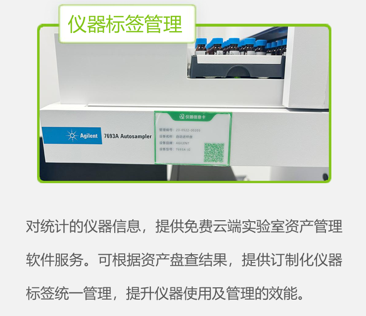 对统计的仪器信息,提供免费云端实验室资产管理软件服务。可根据资产盘查结果,提供订制化仪器 标签统一管理,提升仪器使用及管理的效能。